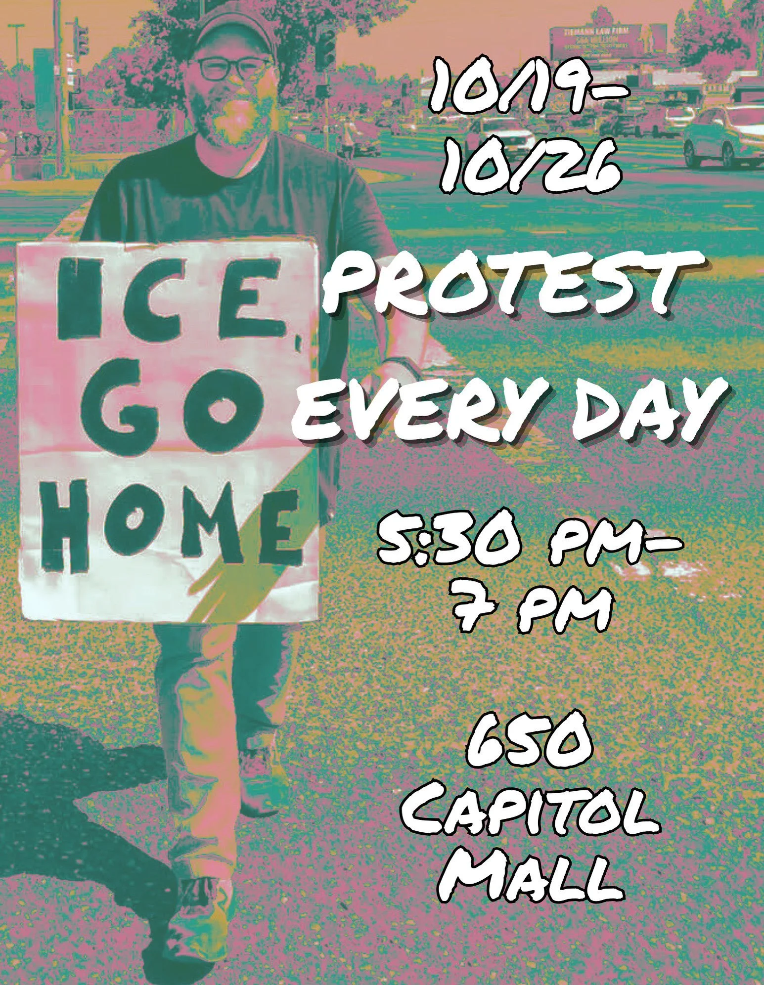Protest everyday this week (Oct 19th thru Oct 26th) at ICE HQ in Sacramento from 5:30 pm to 7:00 pm.